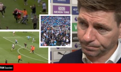 / 4 years agoSteven Gerrard fumes with Aston Villa’s Robin Olsen attacked during Man City pitch invasion