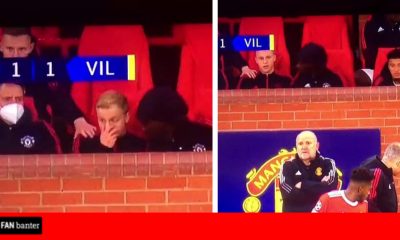 Donny van de Beek furiously throws chewing gum at the ground beneath him after being left on subs bench for the...