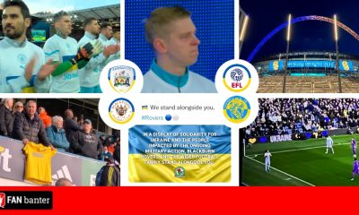 English football show solidarity with Ukraine as fans hold flags, applaud on a specific minute and sing chants aimed at Vladimir...
