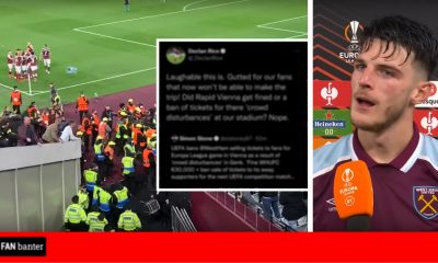 Declan Rice deletes a tweet of his after fuming at UEFA for banning West Ham fans from attending their away game...