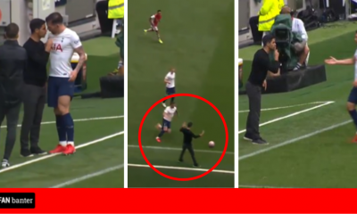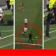 Viewers watching on TV at home and fans from the stands spot what James Maddison did with a pitch invader during...