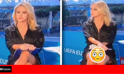 Viewers are convinced an Italian TV host ISN’T wearing any underwear in what appears to be a Euro 2020 wardrobe malfunction....