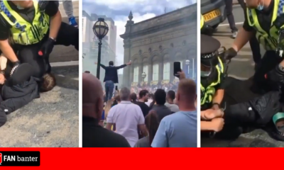 A cop is seen in a video which shows he puts a knee on one Leeds fan’s head, this came the...