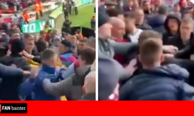 Aston Villa fans fight each other at Wembley during their side’s defeat against Manchester City in Sunday’s Carabao Cup Final. Footage...