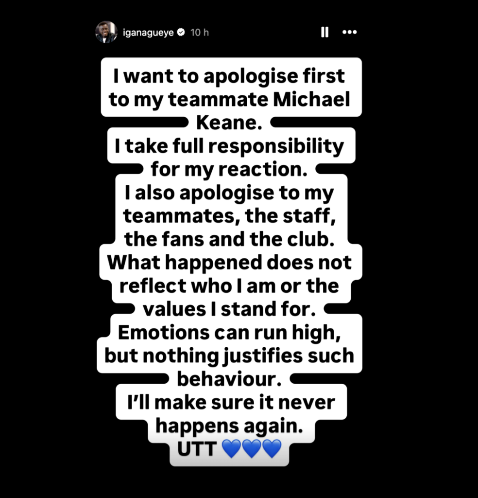 Idrissa Gueye wrote via social media: “I want to apologise first to my team-mate Michael Keane. I take full responsibility for my reaction.