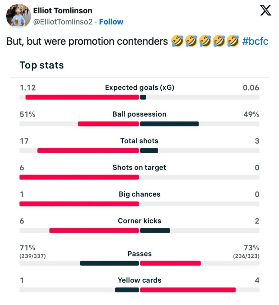 @JamesMcClair_: “Played no fear football” 😭 Fair play to him, proved how good he is as a gaffer and has every right to throw it back at us. #BCFC