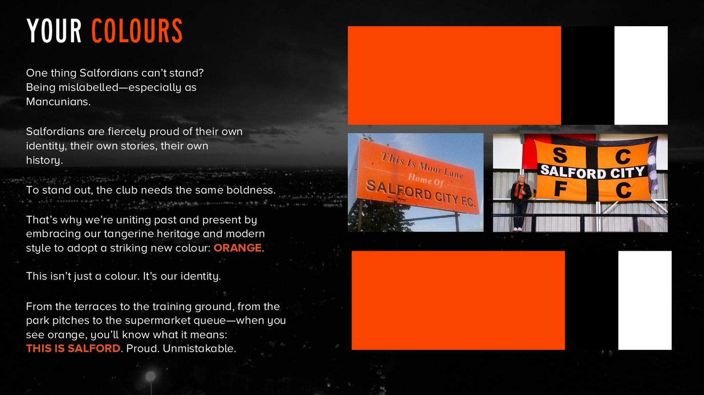 This design was presented to season ticket holders by Head of Creative, Andrew Gordon and co-owner Gary Neville who, alongside Sir David Beckham, are supportive of the change. The presentation also included a video from David explaining the rationale for the proposed change, the parallels between this process and the one that he went through with Inter Miami, and his excitement to help bring Salford City to a global fan base.