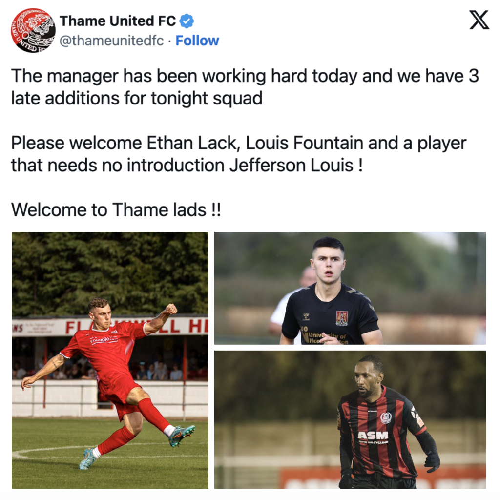 @nonlgupdates: Jefferson Louis onto his 1000th club. (Though I believe he’s played for Thame before). Sadly game abandoned due to a frozen pitch at half time. @BrentwoodSunLge: I saw J Louis play for Thame at Woodbridge in the FA Vase QF of 1999 – been quite a journey since then! @oufc_adam: Hold on, we might need him Saturday #OUFC @banhambtfc: How many clubs is that now @JHarriott84: Like a fine wine 🍷⚽️ @daleoufc89: What a story