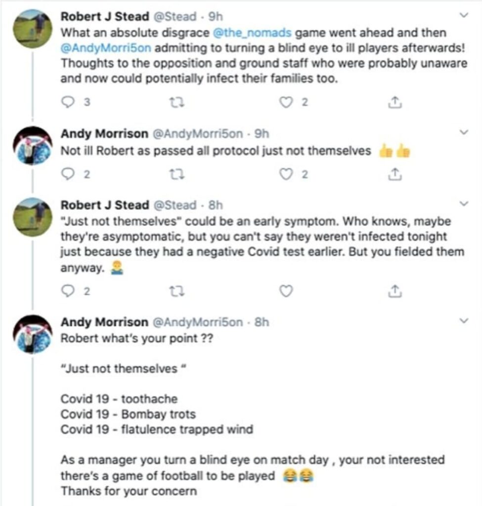 They said: “In a post-match interview with various media outlets, Manager, Andy Morrison used the term ‘turned a blind eye’ which has unfortunately been misconstrued by many to mean that as a club we ignored Covid regulations.
