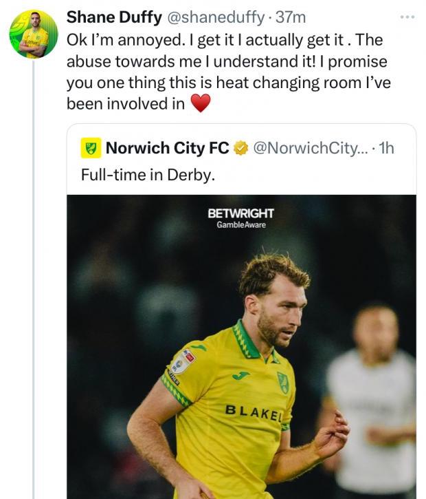 Here’s how Twitter users reacted, while Manning ‘fights on’, McLean says ‘blame us’ and Duffy hits out at fan as Norwich lose to Derby…