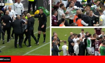 Steven Naismith and Lee Johnson clash in a mass brawl with five red cards shown come full time of Hearts and...