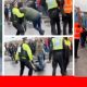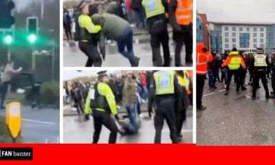 Videos goes viral of Millwall and Reading fans fighting with a man also seen dragged down by police officer in a...