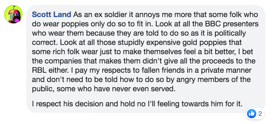 Maura Cosgrave: Very true that it’s his personal choice. As an Irish person I wouldn’t wear the poppy for exactly the same reason
