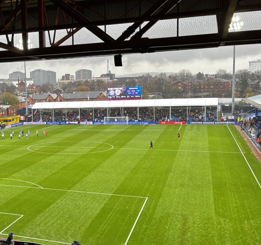 Stevenage fans at The Brick Community Stadium for their EFL League One Fixture against Wigan Athletic!#wafc | #stevenagefc pic.twitter.com/5NdjyhYQ30