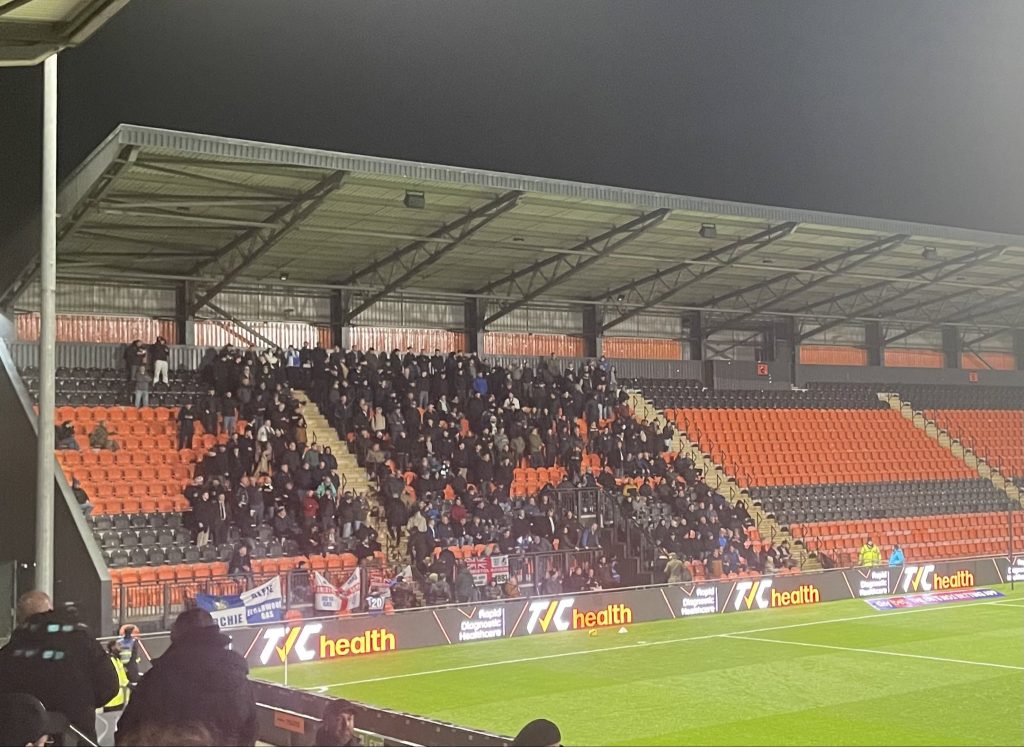Behind netting here at Orient but thankfully it’s dry. Here’s the Town travelling supporters this evening. pic.twitter.com/XikPY925ZT