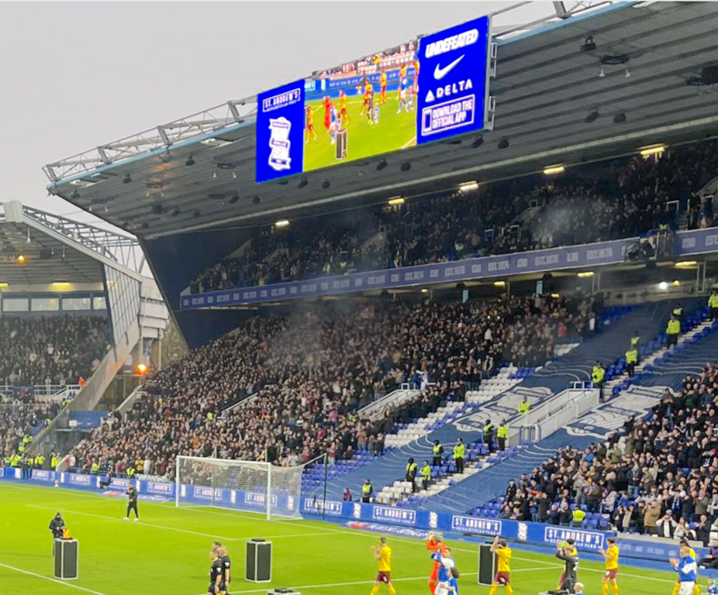 The travelling Northampton fans creating an atmosphere in the St Andrews concourse ahead of kick-off 👊 #ShoeArmy #ntfc pic.twitter.com/xv3ARvvRLV