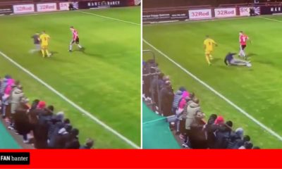 Footage has emerged of a fan who invades the Moss Lane pitch and produces an incredible slide tackle in Altrincham vs...