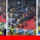 Police intervene to try and stop a fight from escalating after Leeds United fans are spotted in the Rotherham United end....