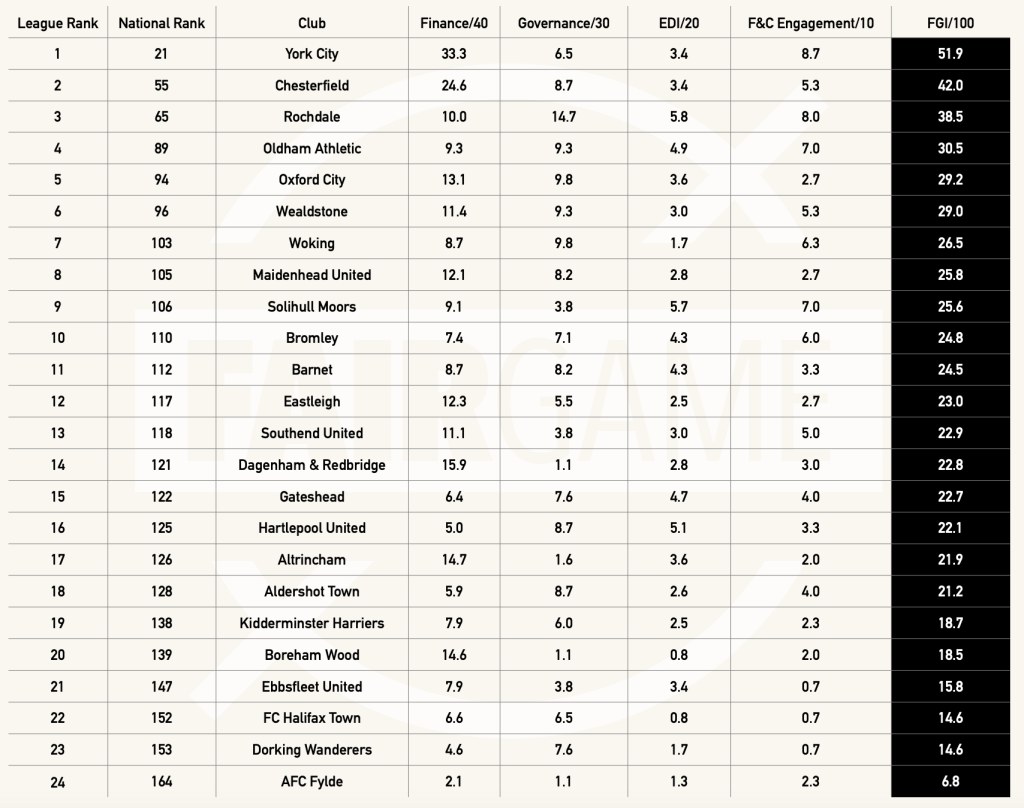 Each club is then scored out of 100, with 40 points coming from financial sustainability metrics, 30 coming from governance measures, 20 for equality standards, and 10 for fan engagement. This score provides a comprehensive measure of how well-run a club is, with a detailed report outlining the winners and losers in each division.