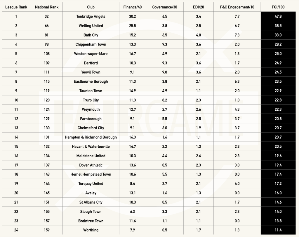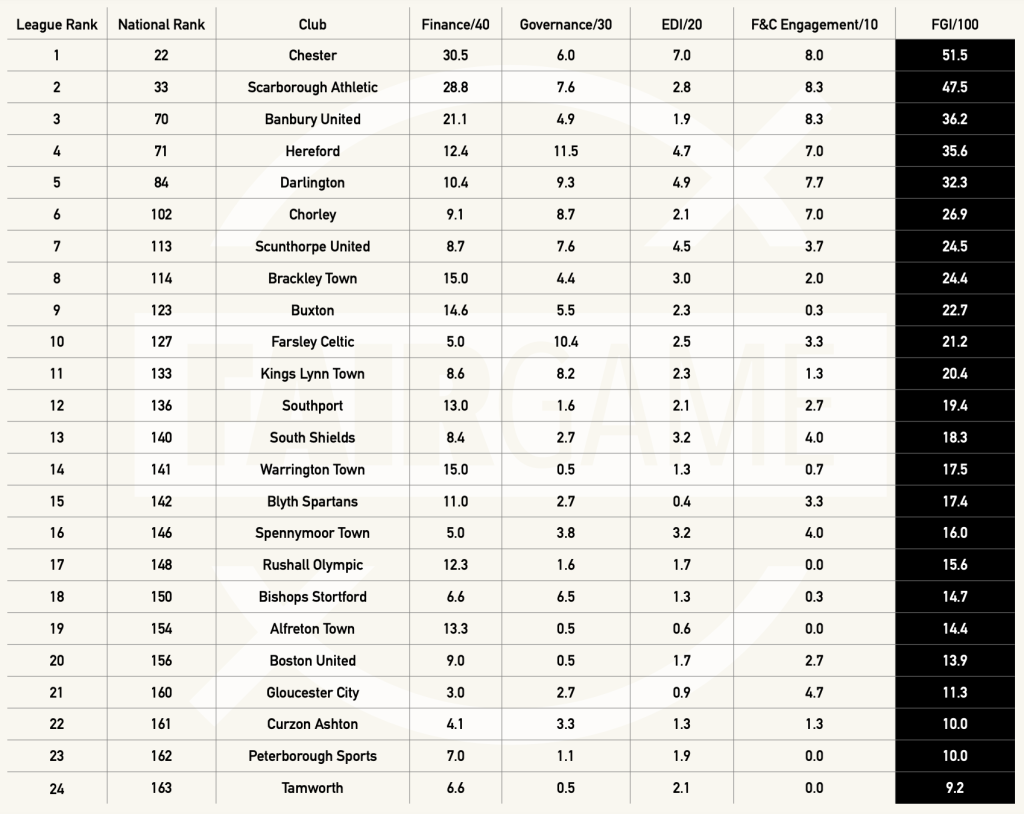 We take a look at the best and worst run Premier League, EFL, National League clubs revealed by Fair Game for 2024. In this section, it’s those in the National League / North /South teams of the 2023/24 season. Check them out below…