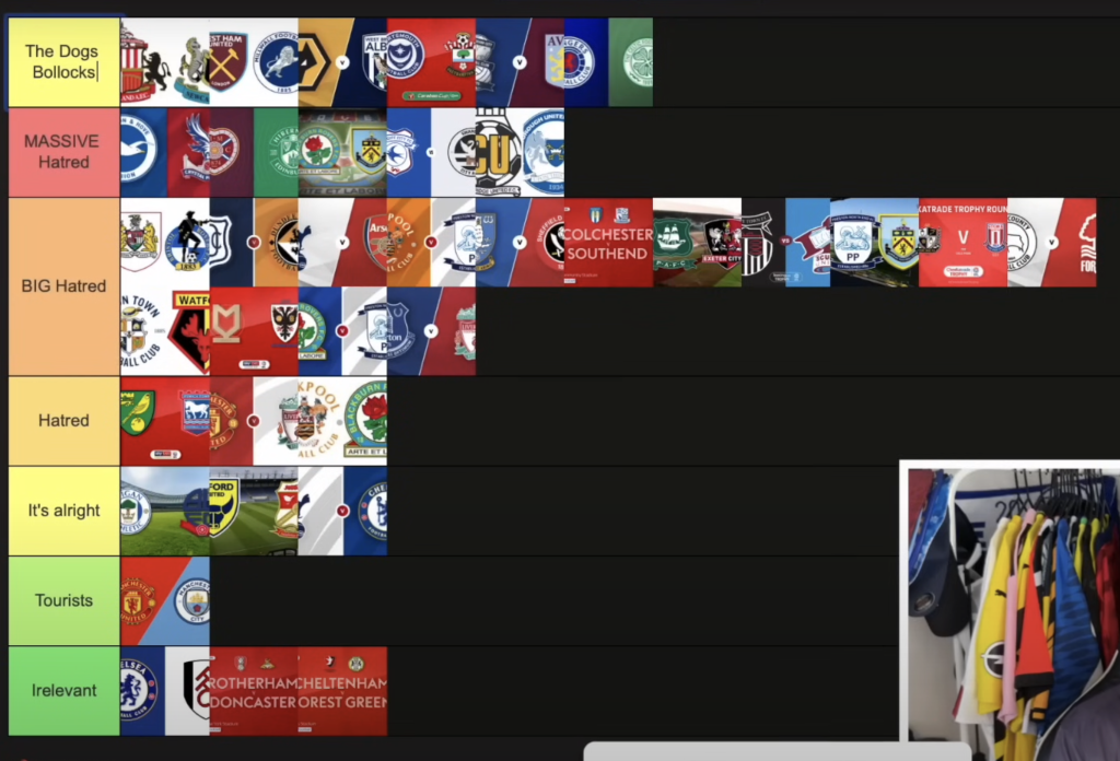 “I don’t like how Burnley v Blackburn, Blackpool v Preston are all taking over this tier list over here. Blackpool versus Blackburn. I’m just gonna say hatred on that one because I think Blackpool’s main rivalries is Preston.